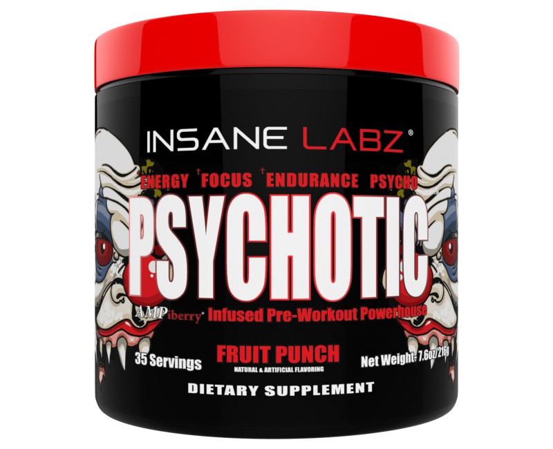 Psychotic da Insane Labz é o pre treino com estimulante mais potente já feito. Com a adição do ingrediente Ampiberry que prolonga a vida útil de estimulantes de ingredientes por até 3 horas. Psychotic da Insane Labz é feito para o atleta de elite e não deve ser utilizado por principiantes. Uma dose de este produto se compara a 3-4 doses de qualquer um dos pre treinos no mercado hoje.